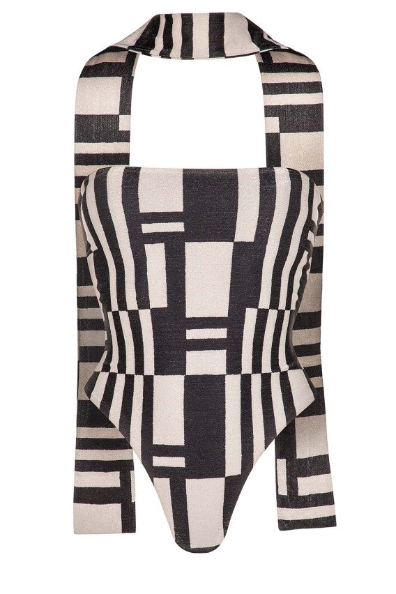 The Jolie Monokini is a modern take on statement swimwear. Featuring a sleek strapless silhouette and a bold geometric design, it contours beautifully to the body while offering a secure, flattering fit. Crafted from high-quality lycra, it combines comfort with structure for a confident poolside look.