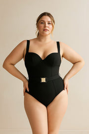 - Detachable belt with a sleek gold clasp to cinch the waist