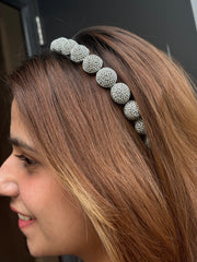 Elevate your look with this dazzling headband, adorned with sparkling circular crystals that resemble a celestial halo. Glamorous yet graceful, it’s the perfect finishing touch for evening wear or festive celebrations.