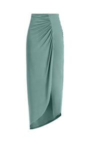 The Luna Drape Skirt exudes understated elegance with its soft ruching and fluid, asymmetrical hem. Designed to hug the hips and flatter the silhouette, this piece offers effortless sophistication whether worn poolside or styled for a coastal night out. The front slit adds a subtle touch of allure, perfect for movement and ease.