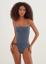 - A striking side cutout creating a flattering shape, enhanced by a braided accent.